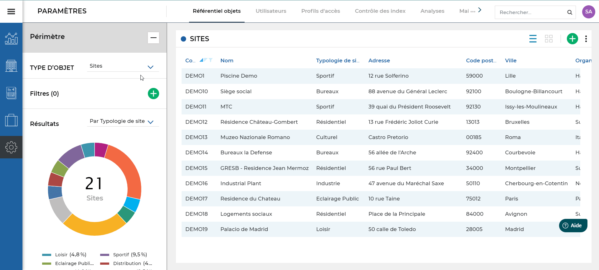Il est également possible de supprimer des capteurs en masse via la page de Référentiel Objets de l'onglet Paramètres: